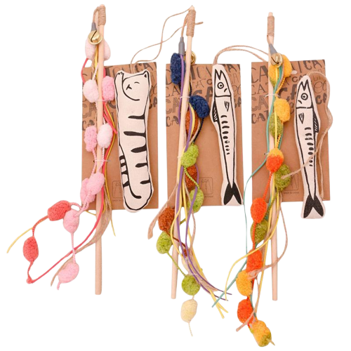 Transformera spelstunderna för din katt till en oförglömlig upplevelse med vår exceptionella fiskespö, speciellt utformad för katter som älskar att hoppa och springa runt! Bli inte förvånad om din katt blir besatt av denna dynamiska leksak. Fiskespöt är utrustat med utbytbara ändar, vilket gör att du kan lägga till en ny touch till leken och stimulera dess jaktinstinkt. Oavsett om det är en fiskformad ände som fångar dess uppmärksamhet med en oemotståndlig doft av kattmynta eller färgglada trådar och pom-poms som är lika fängslande, kommer din fyrbenta vän aldrig att bli uttråkad!